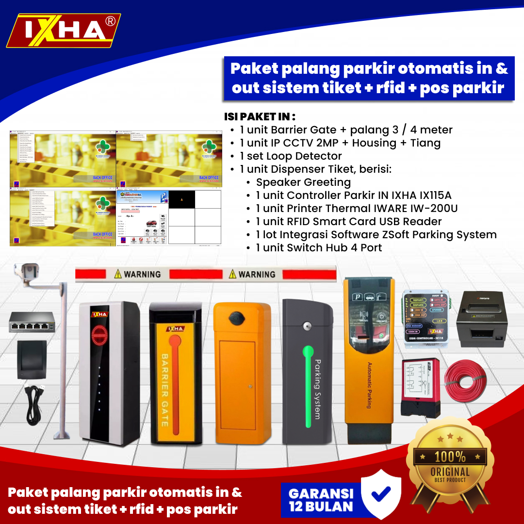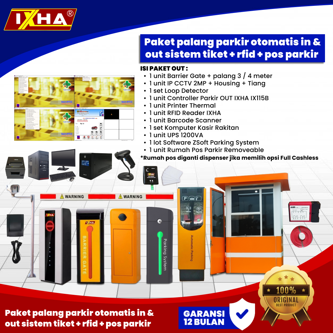 sistem kerja di pintu masuk dispenser cetak struk parkir palang terbuka, pembayaran di pintu keluar sistem scan barcode oleh operator di pintu keluar. utk staff / member menggunakan kartu smart card
