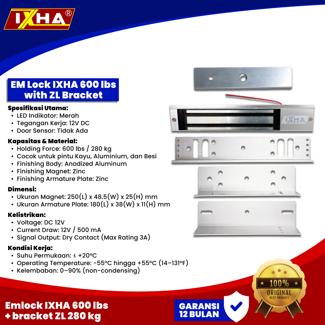 Ixha Em Lock magnetic with Bracket ZL 280kg/600lbs Single Led