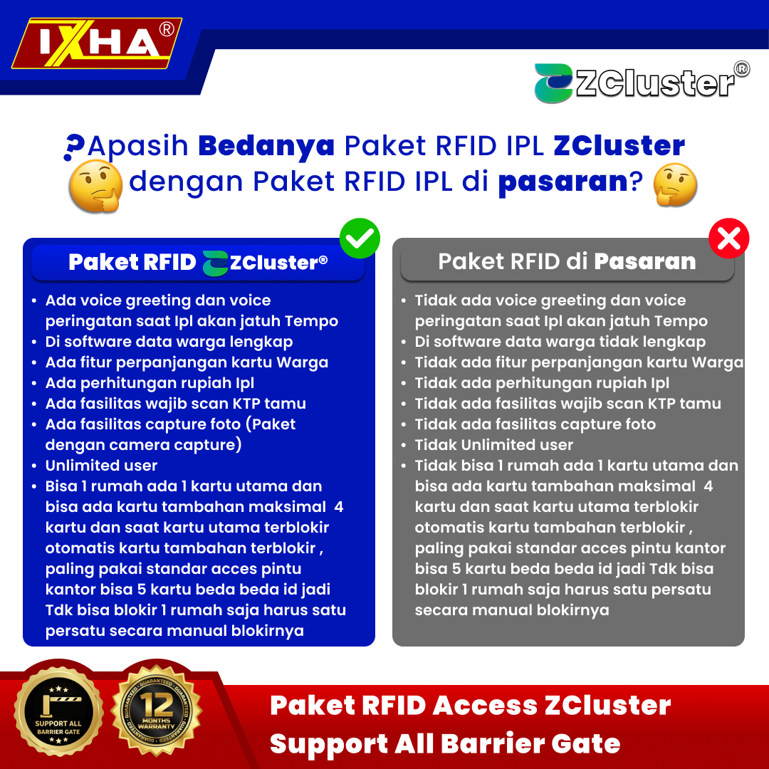 Paket RFID Access untuk Portal PerumahanPaket RFID Access untuk portal Perumahan dengan IPL ZCluster Asli Tanpa Portal Barrier Gate.