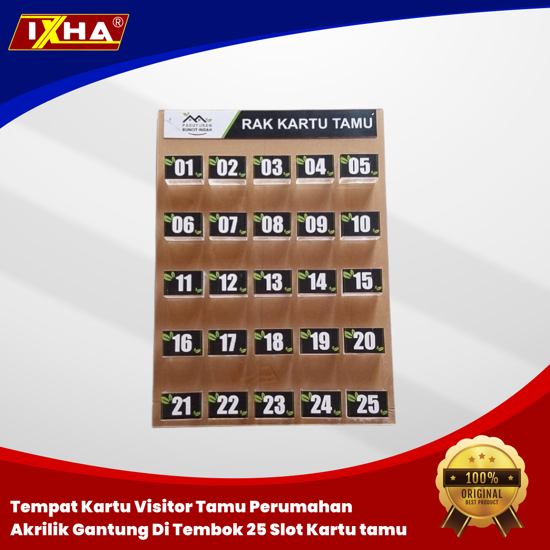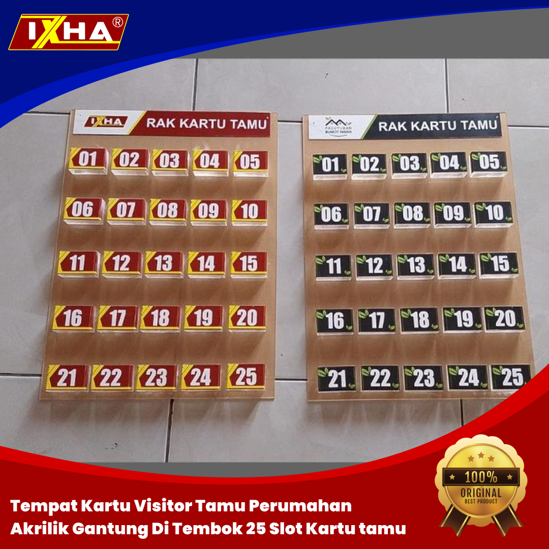 Tempat Kartu Visitor Tamu Perumahan Akrilik Gantung Di Tembok 25 Slot Kartu isi 25 slot ukuran 40 x 55 cm
