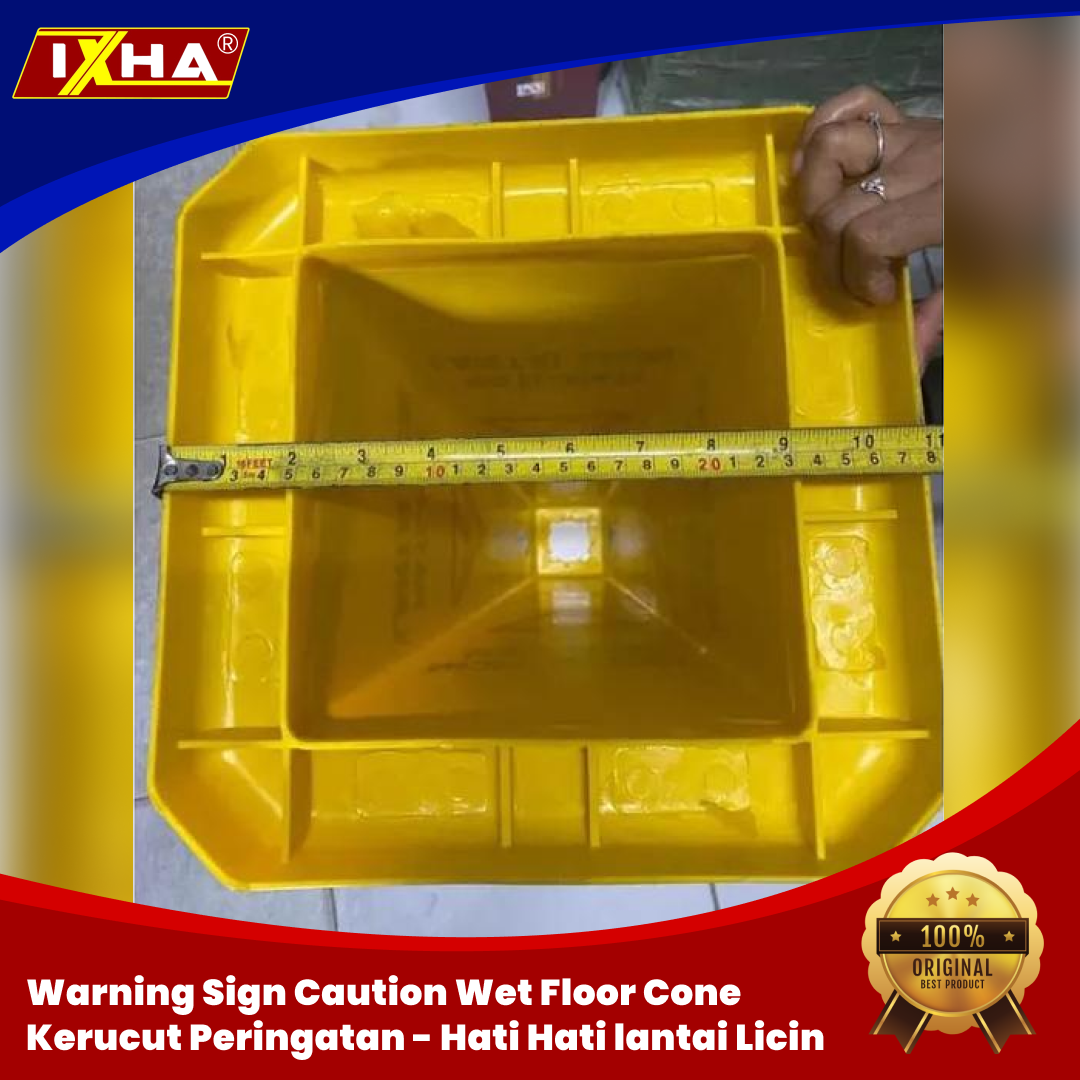 Kerucut Sign wet Floor Papan Peringatan Awas Hati Hati Licin Tinggi= 67 cm lebar atas =8,5cm lebar tapak bawah = 28cm – Papan peringatan ini biasa digunakan sebagai penanda sedang ada nya aktivitas pembersihan lantai / pembersihan ruangan / pembersihan suatu area sehingga lantai /area tersebut menjadi licin/kotor sehingga orang yang melalui area tersebut dapat berhati hati – Warna kuning yang terang dan mencolok agar dapat menarik perhatian dan orang menjadi waspada – Cocok untuk aktivitas cleaning service di gedung, mall, kantor, dll